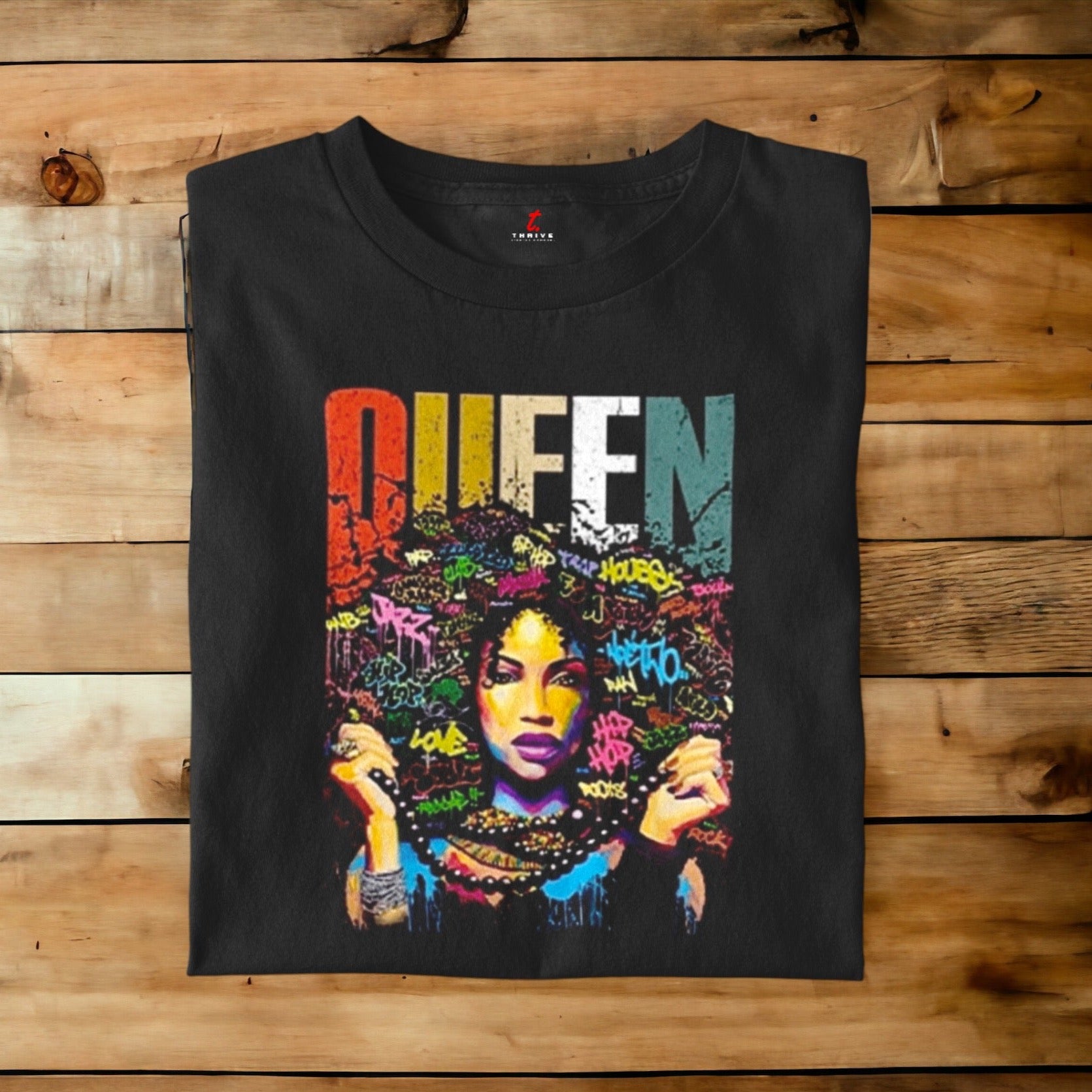QUEEN t-shirt illustrate the bold, beautiful and the powerful imagery of a positive women of color. Make a statement and own your crown with this edgy and inspiring tee.