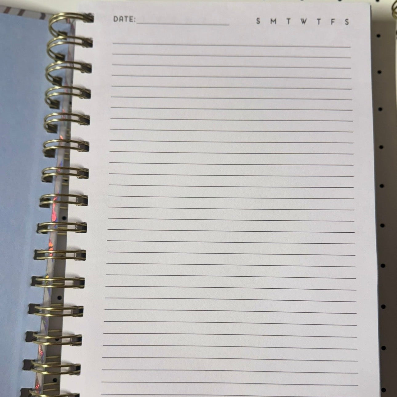 JOURNAL DESCRIPTION: Classic ruled notebooks are all blank inside with 128 lined pages (64 sheets), which would be convenient for daily usage. The hard cover journal has a water-resistant faux leather cover, round corners and bookmarks, which is designed to lay and open flat. There’s a “date/page” column on the top of every page. As a special gift pen is included. Pen included.