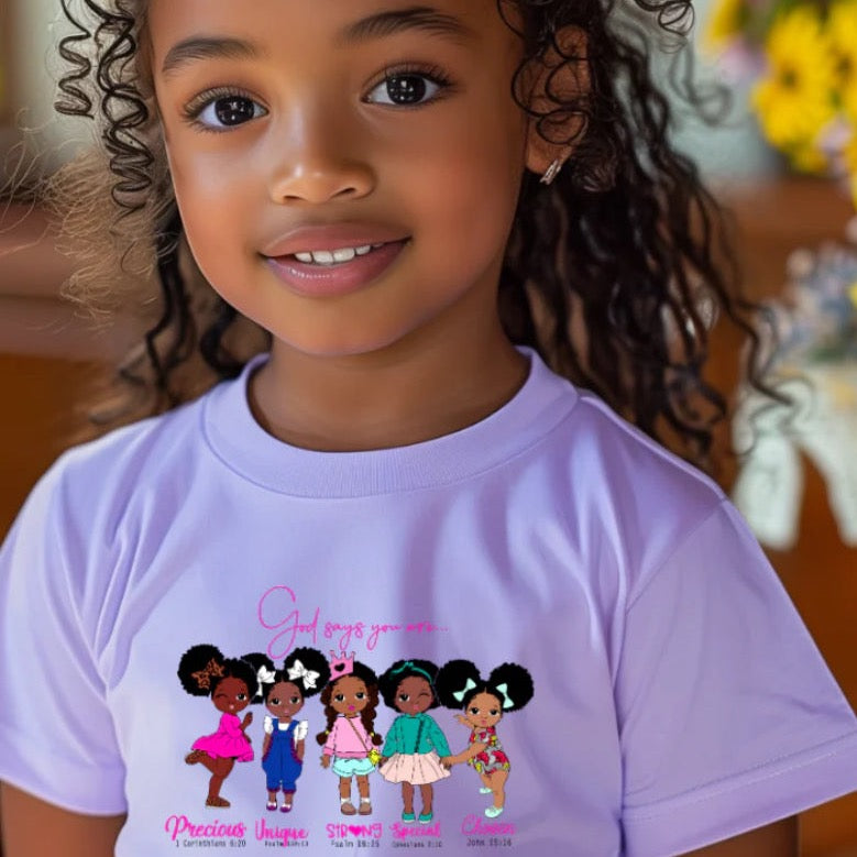 GOD SAYS I AM: BEAUTIFUL, UNIQUE, LOVELY, SPECIAL, CHOSEN, STRONG.